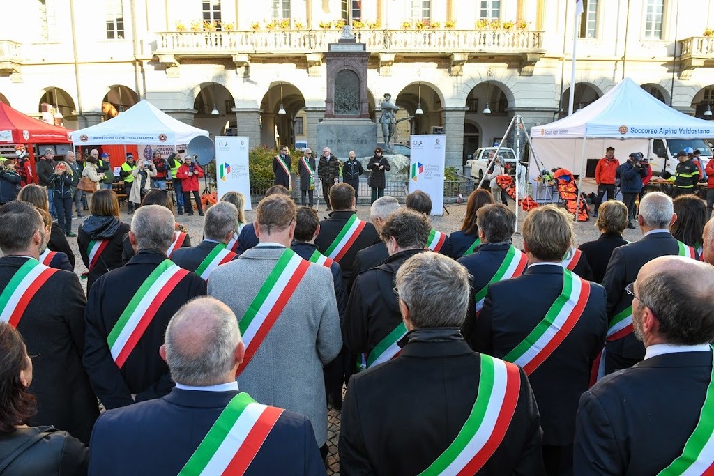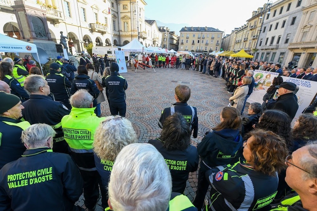 È una mattina limpida, quasi a voler sfidare il ricordo di quell’ottobre di pioggia e fango. Piazza Chanoux si è riempita di divise arancioni, volti emozionati e mani intrecciate nel ricordo. Venticinque anni dopo, la Valle d’Aosta si è fermata per commemorare le vittime dell’alluvione del 2000, chiudendo con un momento solenne la Settimana nazionale della Protezione civile.