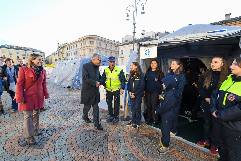 Nel cuore della città, tra gli stand e i mezzi di soccorso allineati, si respira un’atmosfera sospesa tra gratitudine e dolore. “La Protezione civile è un sistema complesso, fatto di soccorso, previsione e prevenzione”, ha spiegato il capo della Protezione civile valdostana Valerio Segor, mentre mostrava ai cittadini il campo base allestito per l’occasione. “In piazza oggi ci sono tutte le componenti che rendono possibile questa macchina: la centrale operativa, gli enti tecnici e, soprattutto, i volontari, che sono il cuore pulsante del sistema”.