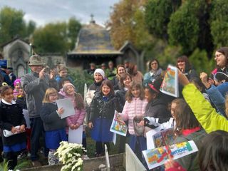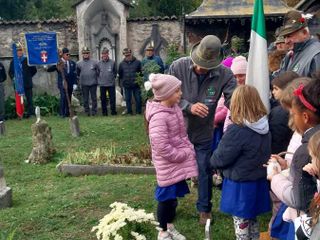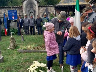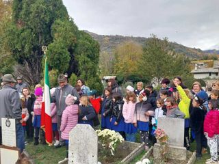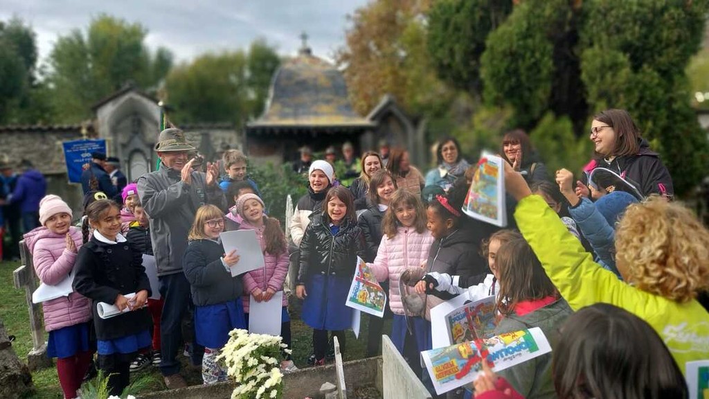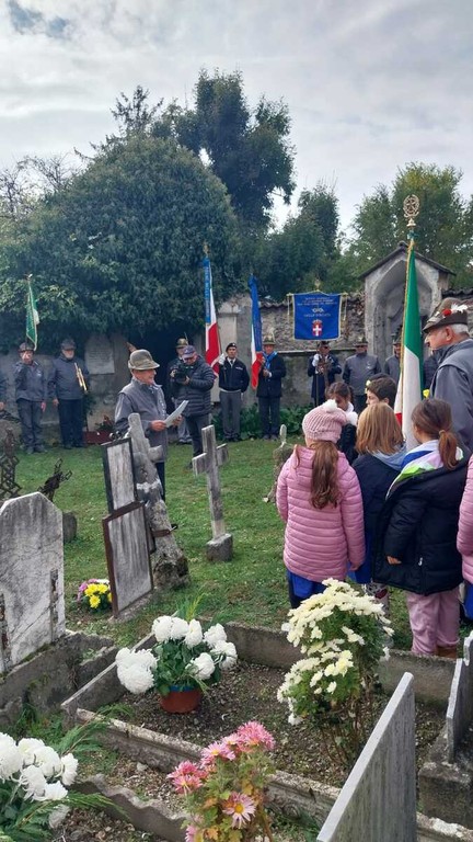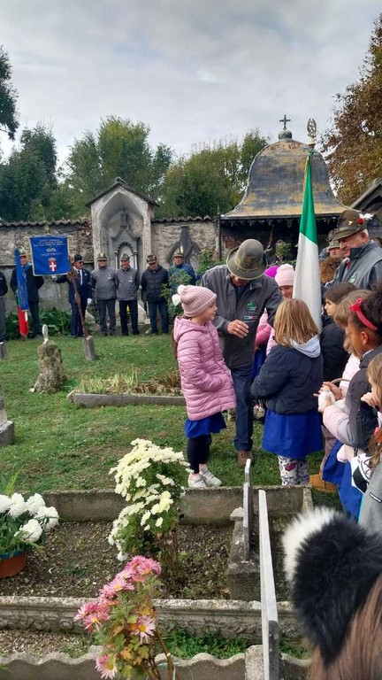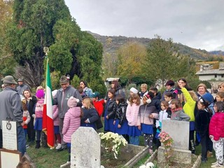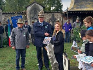 Prima di iniziare la cerimonia, c’è stato anche il giusto spazio per dare ai ragazzi alcune notizie storiche sul Cimitero di Sant’Orso, attirando la loro attenzione su alcuni nomi di persone che riposano all’ombra di piante secolari.