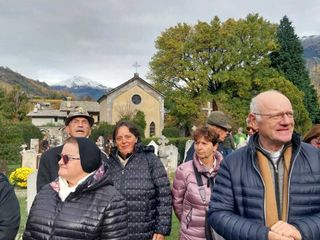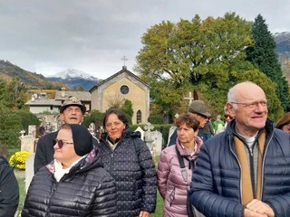 La visita è poi proseguita con le guide degli “Amici del Cimitero di Sant’Orso”, tutti collaboratori della professoressa Iris Faval, che da anni cura la conservazione e il decoro del cimitero.