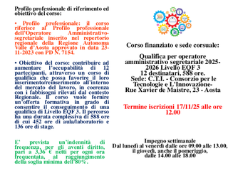 Riferimento normativo: profilo professionale dell’operatore amministrativo-segretariale approvato nel Repertorio Regionale degli standard professionali (PD N. 7154, 23/11/2023).