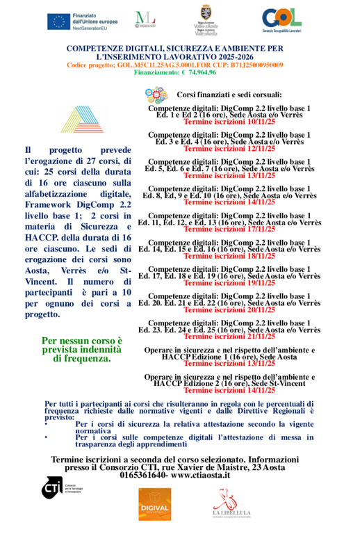 Destinatari: iscritti al Programma GOL presso i Centri per l’Impiego della Valle d’Aosta.