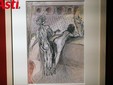 Non mancano i disegni a grafite e inchiostro, che rivelano la forza evocativa del tratto, come quello "rapido e febbrile" del Cugino del cavallo di Lady Godiva o quello quasi caricaturale della serie Jitterbug.