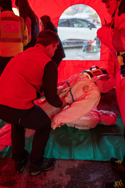 Il percorso ha alternato momenti teorici e simulazioni su scala reale, pensate per mettere alla prova le competenze dei professionisti coinvolti. L’esercitazione centrale del corso ha simulato lo scoppio e il crollo di una struttura, con una decina di persone coinvolte, la costituzione di un Posto medico avanzato esterno e l’allestimento di un’area ospedaliera di trattamento. Uno scenario complesso, costruito per testare prontezza, coordinamento e capacità di risposta rapida.
