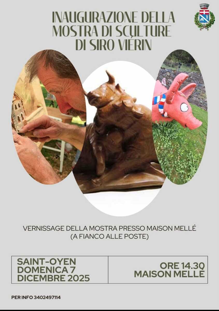 Saint-Oyen si prepara a un appuntamento speciale: il 7 dicembre 2025, la Maison Mellé ospiterà la mostra “La storia scolpita – il legno che prende vita”, dedicata a Siro Viérin. L’Amministrazione comunale, con il Sindaco Alessio Désandré, è pronta ad accogliere cittadini, appassionati d’arte e curiosi, in un evento che promette di far dialogare passato e presente.