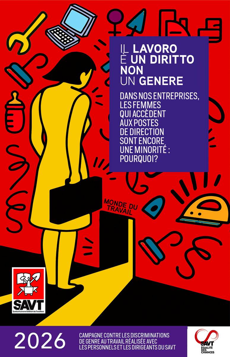 Dal confronto collettivo è nato lo slogan che unisce l’intera campagna: “Il lavoro è un diritto, non un genere.” Tre immagini diventano simbolo del progetto, ciascuna con un messaggio preciso: le difficoltà di accesso delle donne al mondo del lavoro, la libertà di scegliere qualsiasi professione, e gli stereotipi ancora presenti negli annunci occupazionali. Tra queste, la locandina scelta come Tessera SAVT 2026 raffigura una donna di fronte a una piccola porta, simbolo del mondo del lavoro, in cui la dimensione ridotta dell’ingresso mette in evidenza la difficoltà reale che molte donne incontrano ancora oggi nell’accedere a opportunità professionali eque. La tessera, che arriverà a tutti gli iscritti, diventa così un messaggio tangibile dell’impegno quotidiano del sindacato.