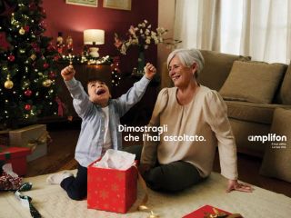 MILANO (ITALPRESS) - Per Natale Amplifon lancia la speciale campagna globale The Wish ("Il Regalo Perfetto"). Una nonna con il suo nipotino, un papà con sua figlia, una coppia che continua a condividere emozioni sono le scene di una campagna fotografica dedicata al valore dell'ascolto al momento di scegliere il regalo più giusto per le persone care.Le immagini di The Wish raccontano il momento dell'apertura dei regali mostrando l'intimità, il calore e l'emozione che nascono dalla consapevolezza di essere stati ascoltati e aver ricevuto attenzione da chi amiamo. Così, il gesto di donare si trasforma in una forma di cura e affetto che coinvolge chi esprime il desiderio tanto quanto chi è in grado di ascoltarlo.Secondo l'Organizzazione Mondiale della Sanità, oggi nel mondo circa 1,5 miliardi di persone convivono con una forma di perdita uditiva (o ipoacusia) e il loro numero è destinato a salire a 2,5 miliardi nel 2050. L'iniziativa riflette la missione di Amplifon di migliorare la qualità della vita delle persone non solo attraverso le tecnologie più avanzate ma anche con un percorso di diagnosi e cura continuo e altamente personalizzato, oltre che tramite iniziative e campagne di sensibilizzazione come il progetto Listen Responsibly.La campagna, realizzata da Amplifon insieme ad Accenture Song Italia con gli scatti dello studio del fotografo argentino Ale Burset, è declinata sulle piattaforme social e digitali in Italia, Spagna, Francia, Germania, Portogallo, Belgio, Olanda, Svizzera, Gran Bretagna, Polonia, Ungheria, USA, Canada, Australia, Nuova Zelanda e America Latina ed è visibile per le vie di Milano.- news in collaborazione con Amplifon -- foto ufficio stampa Amplifon -(ITALPRESS).