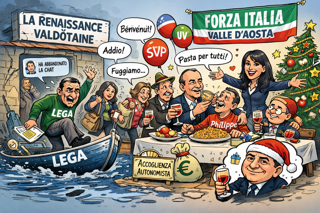 Altro che panettone e spumante: sotto l’albero di Natale, Forza Italia Valle d’Aosta si è fatta un regalo decisamente più sostanzioso, accogliendo a braccia aperte Philippe Milleret, Martine Michieletto, Henry Truchet, Uberto Spalla e l’intero gruppo in uscita da La Renaissance Valdôtaine. Un pacchetto completo, fiocco compreso, che nei primi mesi del nuovo anno andrà a rafforzare — parola d’ordine — l’anima regionalista e autonomista del partito azzurro, che da queste parti sembra aver trovato una nuova vocazione: il recupero dei reduci.