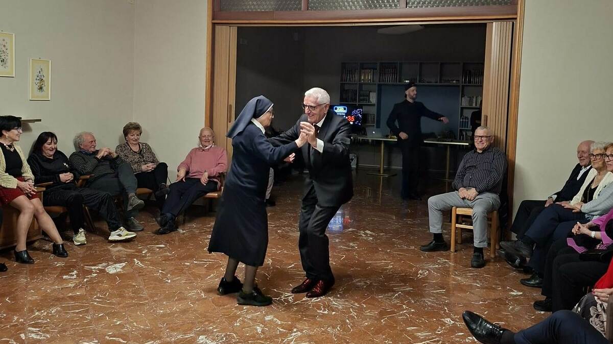 Si avvicina la mezzanotte ed è il momento di ballare. Anche suor Pierangela si lascia trasportare dall’allegria festosa del gruppo e con Piero danza felice, dispensando simpatia. La sobrietà dell’ambiente, per una sera, si arrende alla chiassosa celebrazione del Capodanno e i nostri “diversamente anziani” fanno a gara per ritrovare movimenti e fiato con i quali, tanti anni fa, avevano movimentato le balere.