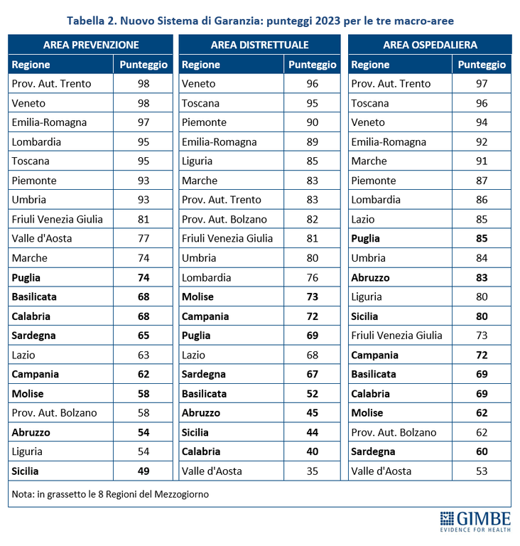 Assistenza distrettuale: 35 punti, 61 in meno rispetto al Veneto;