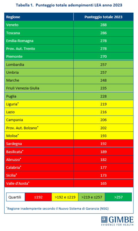 LEA = standard nazionale garantito a tutti.