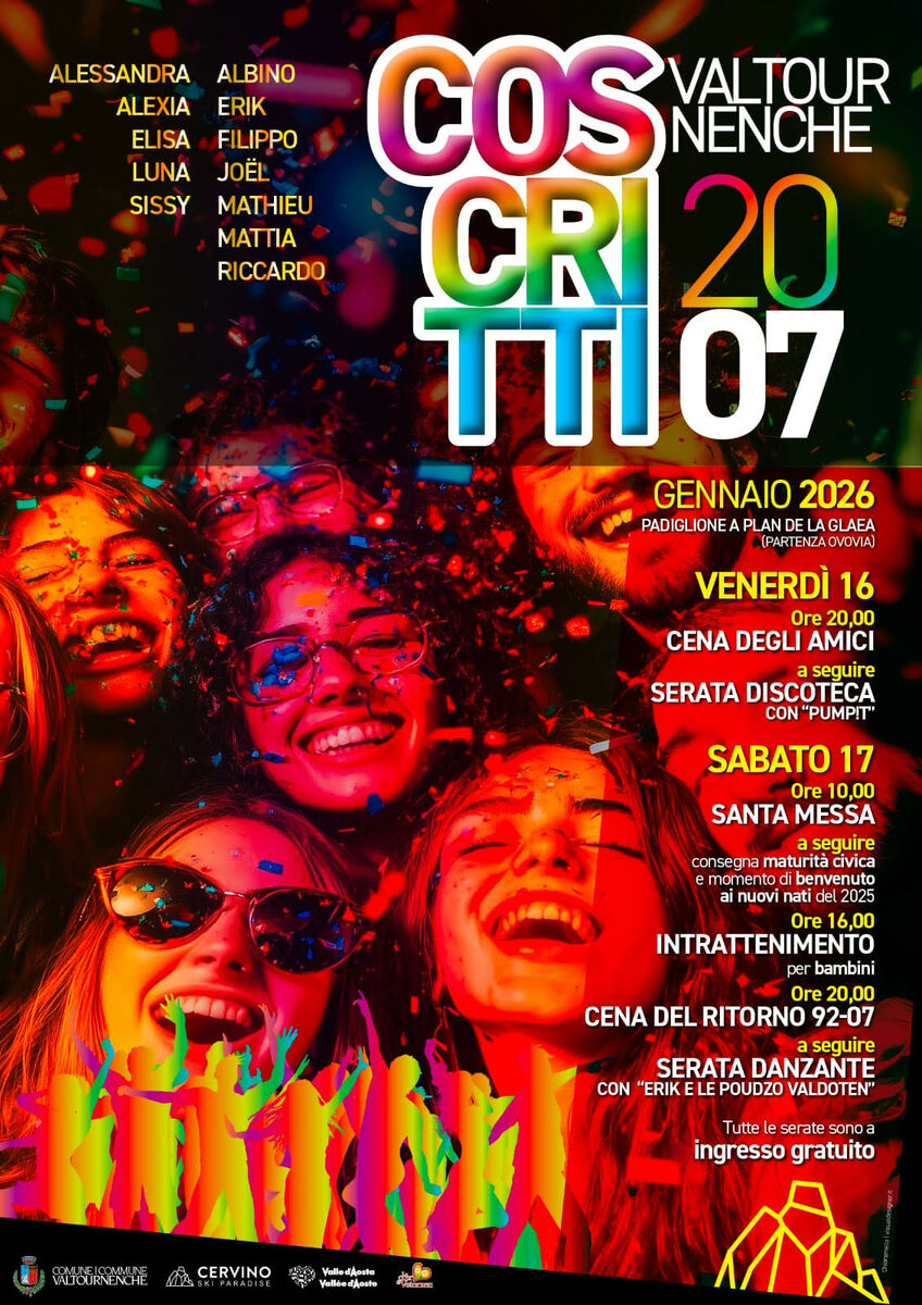 C’è qualcosa di profondamente curioso – e pure un po’ poetico – nel vedere riuniti, nello stesso giorno, neonati e coscritti. A Valtournenche succede, e non per caso. Sabato 17 gennaio 2026, in occasione della festa patronale, la comunità si è ritrovata a celebrare insieme chi ha appena aperto gli occhi sul mondo e chi, invece, ha appena varcato la soglia simbolica della maggiore età.