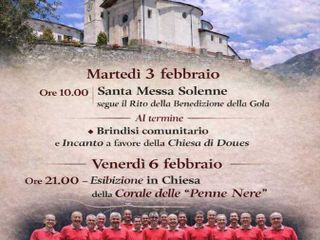 Le celebrazioni dedicate a San Biagio non si esauriranno il 3 febbraio. Venerdì 6 febbraio, alle ore 21, la Chiesa di Doues ospiterà il concerto della Corale delle “Pene Nere”, appuntamento che unirà musica, spiritualità e memoria collettiva, aggiungendo un ulteriore tassello a una festa che è molto più di una ricorrenza religiosa.