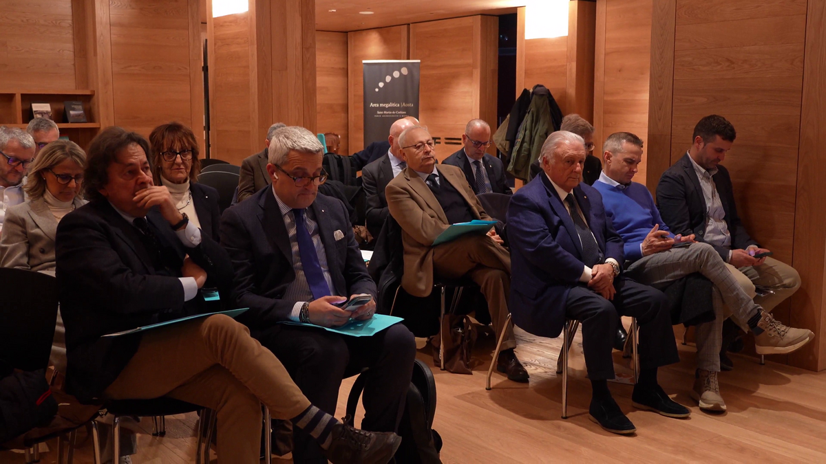 Giovedì 29 gennaio, presso il Mega Museo di Aosta, si è svolto un incontro tra le Camere di Commercio di Liguria, Piemonte e Valle d’Aosta dedicato alle infrastrutture e alle loro ricadute sui sistemi economici territoriali. All’incontro hanno partecipato i Presidenti delle Camere coinvolte, insieme ai rappresentanti di Unioncamere Piemonte e di Uniontrasporti, confermando la volontà di affrontare in maniera coordinata temi strategici per lo sviluppo economico dell’area. Tra gli altri erano presenti: Roberto Sapia, presidente della Chambre Valle d'Aosta, e Graziano Dominidiato, presidente di Fipe-Confcommercio VdA. Presente Luigi Bertshy, vicepresidente della Regione e assessore regionale allo Sviluppo economico, Formazione e Lavoro, Trasporti e Mobilità Sostenibile, Massimiliano Cipolletta per la Camera di Commercio di Torino, Luca Crosetto per la Camera di Commercio di Cuneo, Gian Paolo Coscia per la Camera di Commercio di Alessandria-Asti, Luigi Attanasio per la Camera di Commercio di Genova ed Enrico Lupi per la Camera di Commercio Riviere di Liguria, insieme al Vice Presidente della Camera di Commercio Monte Rosa Laghi, Angelo Santarella