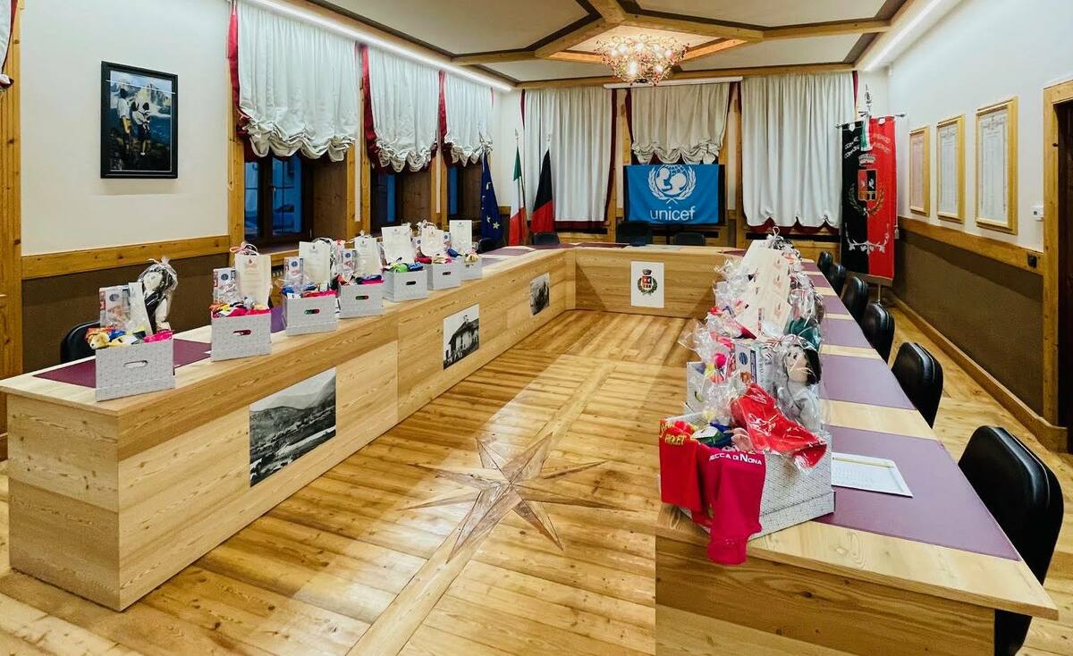 I box bebè raccontano anche un altro aspetto fondamentale: la forza della rete territoriale. Dentro non ci sono soltanto prodotti per l’igiene donati dal Comune, ma contributi dell’associazione Fiolet e Rebatta, dell’Asd Becca di Nona 3142, dell’Asd Charvensod, dei Peuccabouque, della Proloco, degli Alpini, della Gaie Famille, di Envers srl. E poi le tradizionali pouette con i costumi della Gaie Famille de Charvensod, realizzate dalle volontarie dell’Unicef: un dettaglio che unisce identità locale e solidarietà internazionale, perché l’acquisto sostiene i progetti per i bambini dei Paesi in difficoltà.
