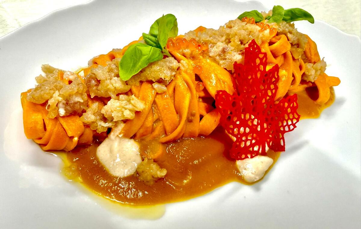 · Annamaria Dublanc, in gara domenica 15 febbraio per il Trofeo Lady Chef, ha conquistato la Medaglia di Bronzo, distinguendosi per creatività, precisione tecnica e capacità di interpretazione gastronomica. Nome piatto “Dialogo di tagliatelle intrecciate con datterino giallo, trota affumicata alpina e crema rustica di scalogno”