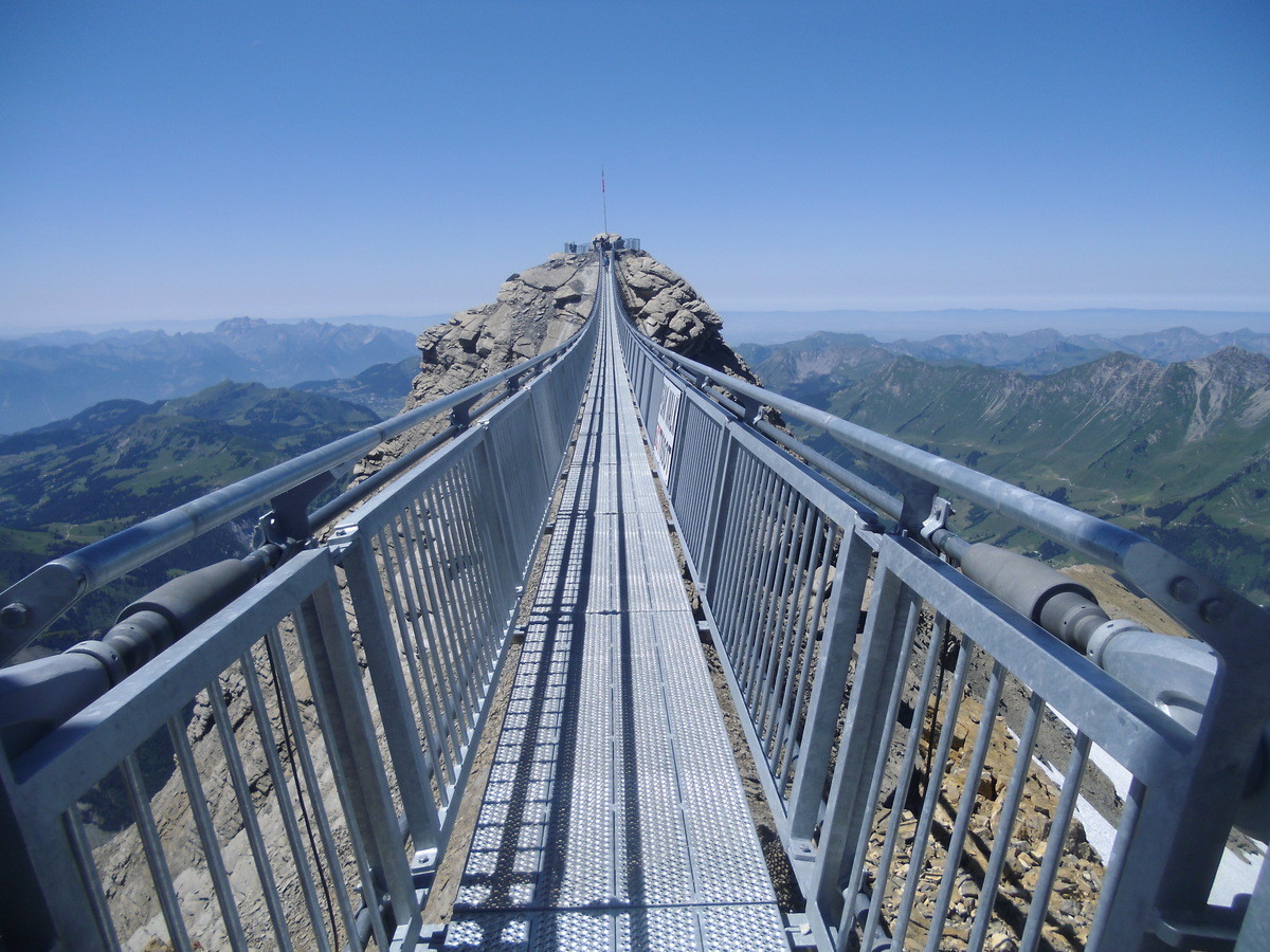 Descrizione itinerario: Dall’arrivo del secondo troncone della funivia, uscire dalla terrazza panoramica usufruendo di una scalinata metallica, più una seconda in muratura che conduce sulla Cima del Belvedere a 2965 m, da cui inizia il ponte sospeso che in 10 minuti conduce sulla cima dello Scex Rouge (2971 m).