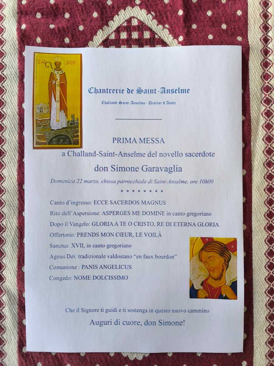 A Challand-Saint-Anselmesi respira già aria di festa per l’arrivo di don Simone Garavaglia, novello sacerdote che domenica prossima celebrerà la sua prima Santa Messa dopo l’ordinazione ricevuta appena una settimana fa. Un momento particolarmente significativo nella vita di un prete, ma anche per l’intera comunità parrocchiale, che si stringe attorno a lui per accompagnarlo in questo passaggio così importante.