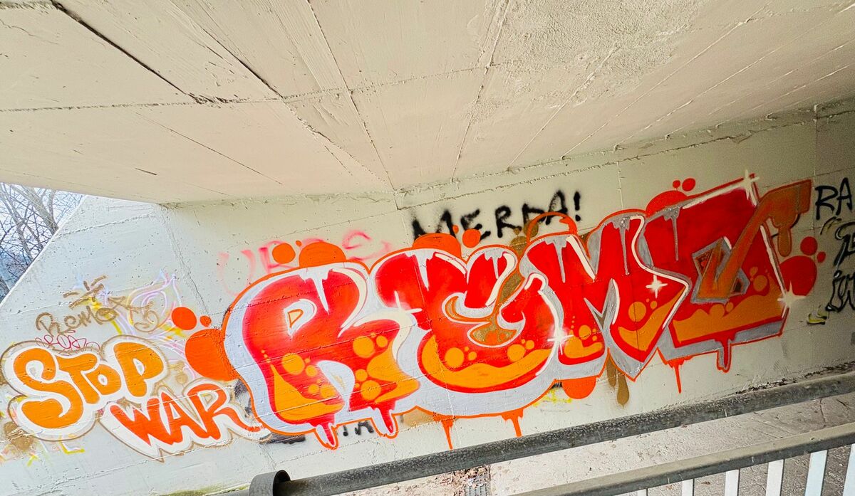 Sulle sue pareti, tra segni e colori, emerge una scritta semplice, quasi disarmante: “Stop war Rome”. Parole tracciate con tinte giallo-arancioni che bucano il grigio del cemento e arrivano dritte allo stomaco. Non è un’opera da museo. Non è patinata. Non chiede permesso. Ma proprio per questo è vera.
