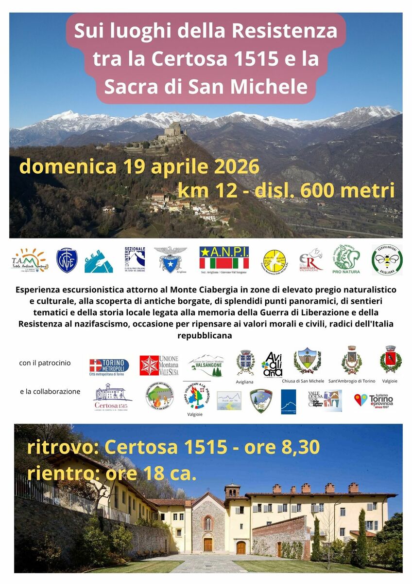 Il percorso prosegue verso il Colle Braida e la borgata Basinatto, dove si trova il monumento dedicato ai Martiri della Buonaria, anch’essi vittime della repressione nazifascista. Altri luoghi simbolici punteggiano il cammino: la Croce Rossa, la Cava d’Andrade, il Colle della Croce Nera con vista sulla Sacra di San Michele, fino ai punti panoramici del Colletto del Farò e della Punta dell’Ancoccia.