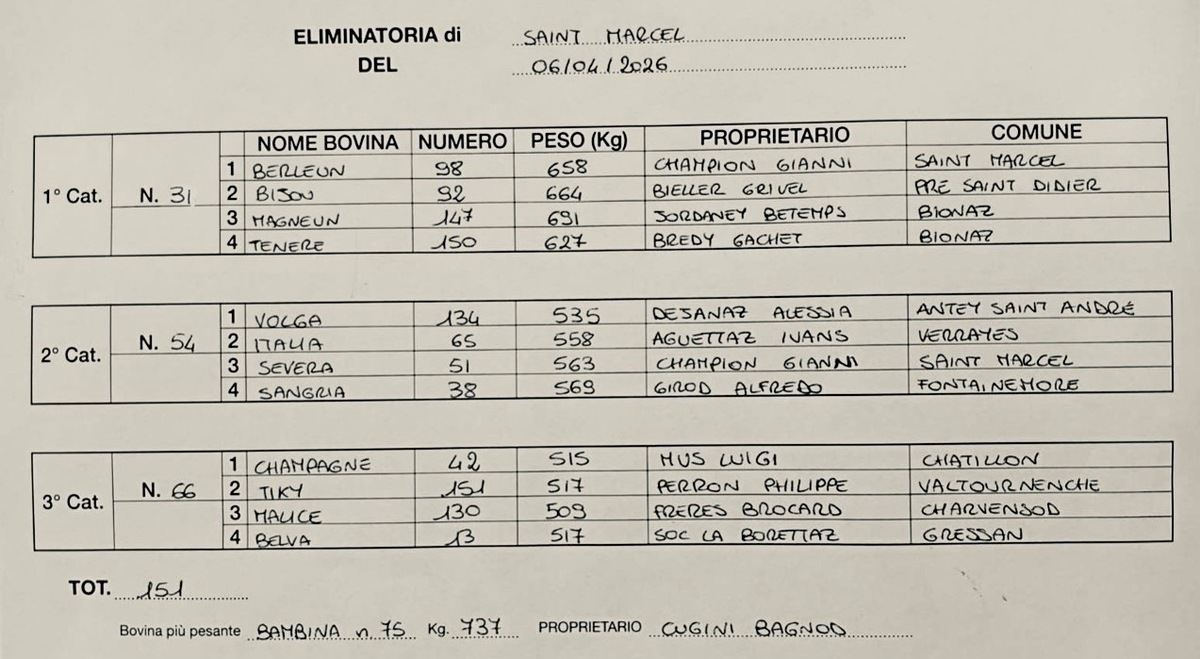 In seconda categoria, il successo è andato a Volga di Alessia Dejanaz di Antey-Saint-André, capace di avere la meglio su Italia di Ivans Aguettaz di Verrayes.