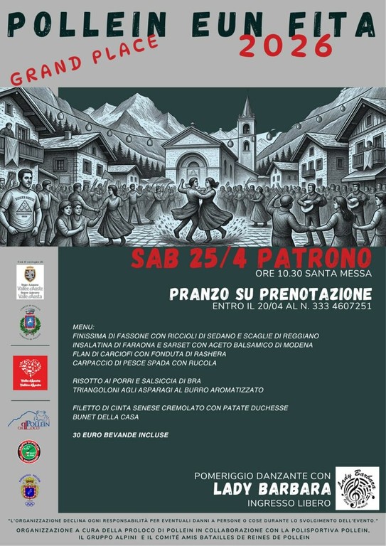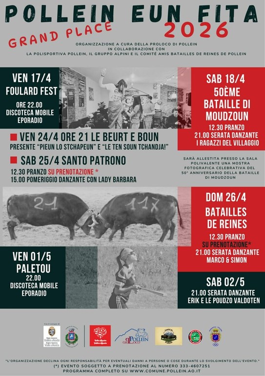 Tre fine settimana per raccontare un paese, le sue radici e la voglia di stare insieme. A Pollein è tutto pronto per “Pollein eun Fita 2026”, la manifestazione che dal 17 aprile al 2 maggio 2026 trasformerà la Grand Place in un punto di incontro tra tradizione, sport e cultura, con un programma costruito a più mani dalle realtà associative locali.