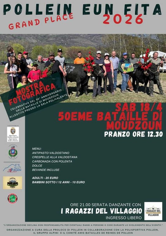 A riassumere lo spirito della manifestazione è il vicesindaco Maurizio Borbey: “Questa manifestazione rappresenta molto bene lo spirito di Pollein, perché nasce dalla capacità delle associazioni locali di fare rete e di organizzare qualcosa di bello e significativo per il paese. Tutto è partito dalla volontà di festeggiare i 50 anni della Bataille di Moudzoùn, una ricorrenza importante per la nostra comunità”.