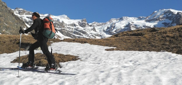Un classico itinerario primaverile di scialpinismo: la prima parte presenta spesso scarsità di neve e, fino a Cortlys, si procede con gli sci a spalla.