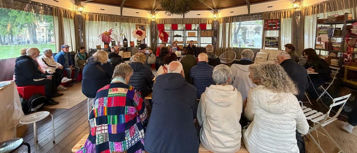 Particolarmente intenso il momento dedicato ai libri, ospitato nel gazebo dei Giardini Sambuy. Protagonisti gli autori Lodovico Marchisio e Giorgio Bonino, accompagnati da Roberta Maffiodo. Un incontro che ha saputo mescolare parole e musica, riflessione e sentimento.