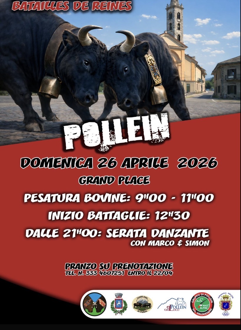 Saranno 220 bovine a varcare l’Arena di Pollein, in località Grand Place, domenica 26 aprile 2026, per quello che non è soltanto un appuntamento spettacolare, ma un vero e proprio momento identitario per il mondo agricolo valdostano. L’ultima eliminatoria primaverile del 69° Concours Régional Batailles de Reines arriva come una resa dei conti attesa, dopo le tappe di Pont-Saint-Martin, Saint-Marcel, Jovençan e Gignod.